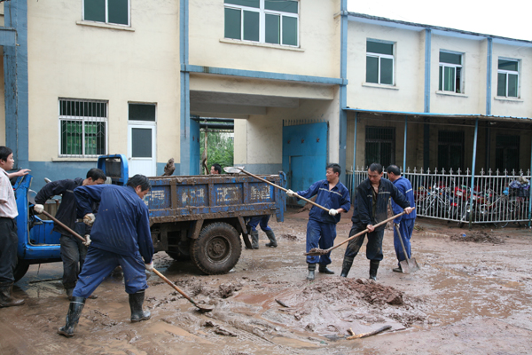 局長宋志剛一行首先前往災(zāi)區(qū)查看險情,然后到礦工俱樂部臨時安放點看望了受災(zāi)群眾,要大家堅定信心,相信組織。接著召開緊急會議,安排部署救災(zāi)任務(wù)。局長宋志剛說:我們的職工是我們企業(yè)最大的財富??吹竭@么多職工受災(zāi)嚴(yán)重,心情很沉重,我代表杜樹山書記向大家表示慰問。我們一定要以人為本,共度難關(guān)。他強(qiáng)調(diào)要將救災(zāi)物質(zhì)在最短的時間運到,解決職工群眾的生活急需。要將日間和夜間巡查工作做實,保證群眾的生命和財產(chǎn)安全。要加強(qiáng)組織協(xié)調(diào)、分工明確,各負(fù)其責(zé),落實到人。要加強(qiáng)防疫工作,避免再次發(fā)生災(zāi)情。要加強(qiáng)與地方的協(xié)作溝通,相互協(xié)作,共同抗災(zāi)。并在會上一致決定,礦區(qū)工會給50戶受災(zāi)家庭發(fā)放1000元/戶的救濟(jì)款。