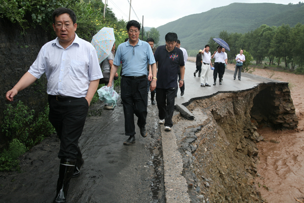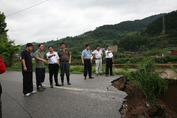 局領(lǐng)導(dǎo)一行查看斷裂的道路
