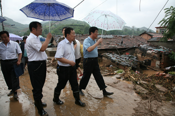 局領(lǐng)導(dǎo)一行冒雨到受災(zāi)最重的地方查看災(zāi)情