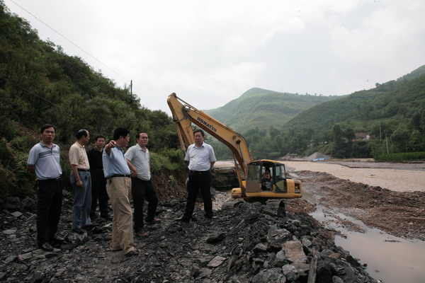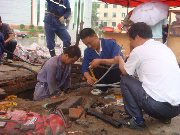 局長宋志剛、副局長郭寶輝來到緊急搶修的斷路上察看工程進(jìn)度
