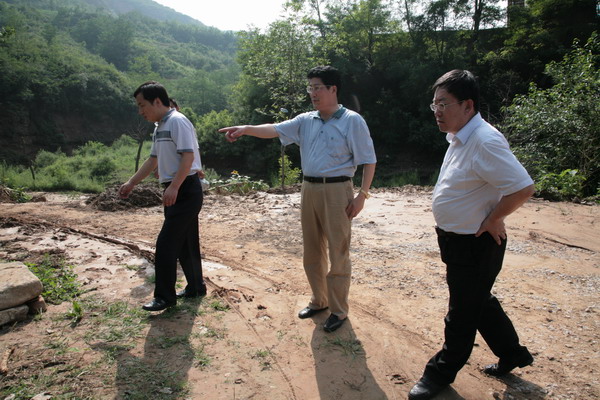 接著,局長宋志剛 一行驅(qū)車趕到焦坪社區(qū),聽取了社區(qū)主任燕萬民的匯報。暴雨造成1500余戶居民受災(zāi)。街道、居民區(qū)路面毀損,多處房屋進(jìn)水、倒塌,多處山體滑坡,大部分排水溝堵塞。最為嚴(yán)重的是建莊水廠部分水源井高壓供電線路被毀,1號、2號大口井管道被洪水沖走,4號、5號、6號深井管路沖斷,建莊通往各水源井的公路橋被沖垮,玉華川至建莊水廠24公里道路多處滑坡垮塌,導(dǎo)致玉華礦區(qū)斷水8天,災(zāi)情嚴(yán)重。局副總劉國強(qiáng)、礦區(qū)工會副主席何玉璽及總調(diào)度室人員已驅(qū)車趕往建莊水廠,實地查看災(zāi)情,制定切實可行的方案,緊急安排搶修工作。局長宋志剛仔細(xì)的詢問了這兩天供水的情況。焦坪社區(qū)根據(jù)受災(zāi)情況,臨時恢復(fù)兩口水井供水,確保三日內(nèi)礦區(qū)能夠有少量供水,暫緩焦坪地區(qū)的生活和生產(chǎn)用水緊張局面。同時,搶修被毀道路橋梁,運送材料物質(zhì),全面恢復(fù)供電線路,確保正常供水。社區(qū)還向全焦坪社區(qū)職工家屬致一封信,詳細(xì)的介紹了當(dāng)前面臨的嚴(yán)峻形勢,提出解決方案,希望群眾相信組織,依靠組織,不信謠、不傳謠,樹立節(jié)水意識,克服當(dāng)前困難,發(fā)揮自身優(yōu)勢,積極開展生活自救,合理安排工作、生活,團(tuán)結(jié)一致、齊心協(xié)力,攻讀難關(guān)。面對焦坪、玉華礦嚴(yán)重缺水的情況,副局長郭寶輝與銅川市王益區(qū)消防隊積極協(xié)調(diào),部隊發(fā)揚革命優(yōu)良傳統(tǒng),用消防車為玉華礦職工家屬送水,解決燃眉之急。此時,軍民魚水情盡顯眼前。