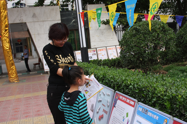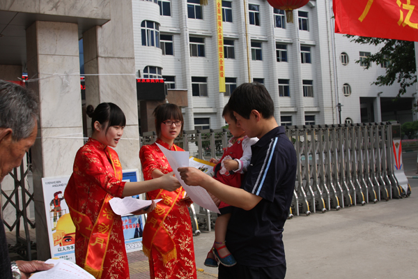 宣傳員向過往行人發(fā)放家庭安全彩頁圖
