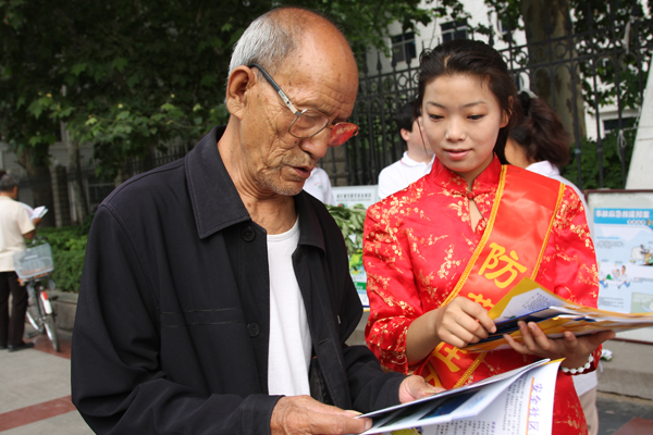 大爺,看看社區(qū)安全宣傳