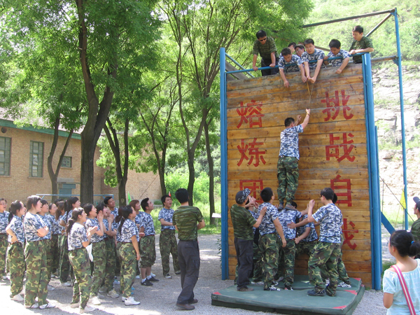 學員們團結(jié)協(xié)作共同攀登