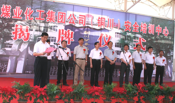陜煤化集團(tuán)總經(jīng)理高仰才、銅川礦務(wù)局局長宋志剛為安全培訓(xùn)中心揭牌。