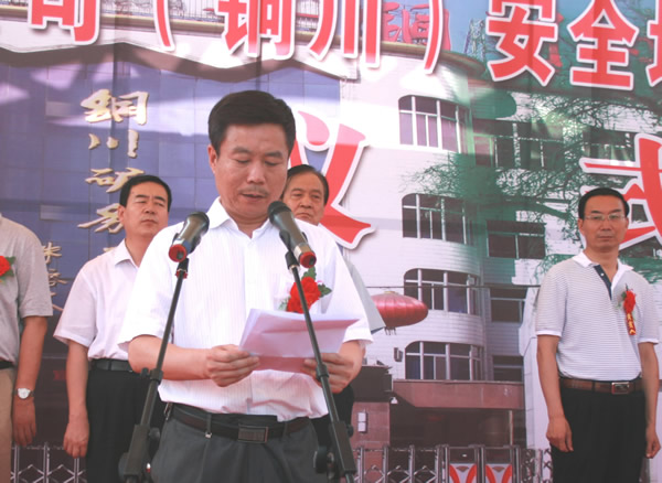集團(tuán)公司安監(jiān)部經(jīng)理李文革主持儀式并宣讀集團(tuán)公司247號文件
