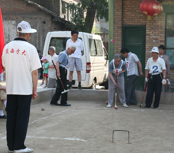 此時烈日炎炎,氣溫在35度左右。但是,惡劣的天氣檔不住老同志們的比賽熱情,三里洞隊參賽隊員有的從西安專程趕回來參加這次比賽,王石凹隊的老同志們提前一天來到了比賽現(xiàn)場練球、熟悉場地,晚上在沒有比賽的情況下老同志們?nèi)匀粊淼綀龅剡M行訓練。煤技校隊是這次比賽平均年齡最大的隊伍,但是他們頑強拼搏,發(fā)揚老驥伏櫪,志在千里的精神,賽出了風格,賽出了友誼;史家河社區(qū)發(fā)揚東道主的精神,熱情接待參賽隊友,設立急救站,密切關心老同志的身體狀況,每天提供優(yōu)良的后勤服務,受到了各參賽隊的好評。