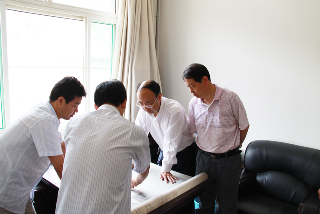 黃河在聽取了該公司總工程師景興平綜采2220工作面涌水情況及排治水工作進展匯報后,同該公司相關領導、技術(shù)人員對照有關圖紙,就該公司下一步防治水工作進行了認真研究部署。黃河強調(diào),由于采取了一些得力措施,水患有了一定程度的緩解,對工作面的正常生產(chǎn)影響不大,但要考慮到汛期的到可能會影響到排治水工作的正常開展。在近期工作中,要結(jié)合當前“三防”工作,圍繞安全、質(zhì)量標準化、排水工作這三個方面,做到重心前移,重點下移,要以“如履薄冰”的危機感和責任感一如既往的抓好排水、清淤工作,要將清淤泥,排水工作上升到政治高度,全力保證排水管道暢通,保證設備正常運轉(zhuǎn),保證綜采面正常生產(chǎn),防止水害對生產(chǎn)工作造成不利影響。圖為:常務副局長黃河同鴨口公司相關領導、技術(shù)人員對照有關圖紙,就該公司下一步防治水工作進行認真研究部署。