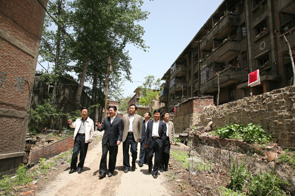 局副總劉國強一行在李家塔居民區(qū)實地考察