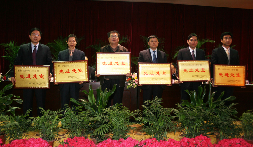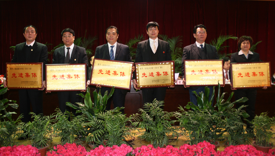 會(huì)上,公司黨委副書記李志科宣讀了公司黨政《關(guān)于表彰2009年度“三型六化”企業(yè)建設(shè)先進(jìn)集體和先進(jìn)個(gè)人的決定》,公司與會(huì)領(lǐng)導(dǎo)還為6個(gè)礦、處級(jí)先進(jìn)集體、6個(gè)先進(jìn)處室、40個(gè)模范 “六好區(qū)隊(duì)”、50個(gè)科級(jí)先進(jìn)集體、65個(gè)明星班組及先進(jìn)個(gè)人代表頒發(fā)了獎(jiǎng)牌。先進(jìn)代表、下石節(jié)礦綜采隊(duì)隊(duì)長李建林宣讀了倡議書。陳家山礦、王石凹礦、徐家溝煤礦有限責(zé)任公司、供應(yīng)處、運(yùn)銷分公司、史家河社區(qū)管理中心、公司黨委辦公室、黨委組織部、安監(jiān)局、生產(chǎn)處、勞社處、項(xiàng)目開發(fā)處等先進(jìn)集體以書面材料的形式進(jìn)行了經(jīng)驗(yàn)交流。
