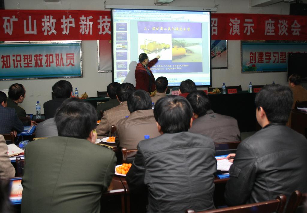 3月16日,由中國煤炭工業(yè)勞動保護(hù)科學(xué)技術(shù)學(xué)會主辦、銅川礦業(yè)公司救護(hù)大隊協(xié)辦的《礦山救護(hù)新技術(shù)、新裝備介紹演示座談會》在銅川礦業(yè)公司救護(hù)大隊舉行。會議由中煤勞保學(xué)會副會長李文俊主持,銅川礦業(yè)公司礦區(qū)工會主席張仿文、局副總工程師劉長來、安監(jiān)局總工程師張清學(xué),開灤礦務(wù)局救護(hù)大隊總工程師孫樹成,銅川礦業(yè)公司救護(hù)大隊大隊長劉平治、黨總支書記童普選和陜西煤業(yè)化工集團下屬的彬長、韓城、澄河、蒲白礦業(yè)公司及部分省外救護(hù)大隊的領(lǐng)導(dǎo)等60余人參加了會議。