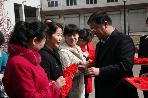 局黨委副書(shū)記李志科為代表戴上大紅花