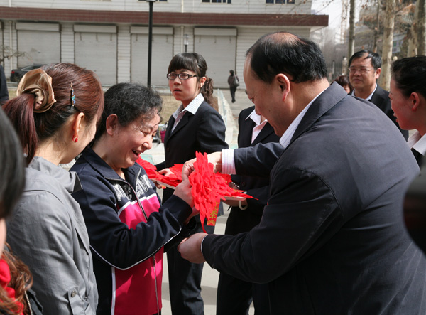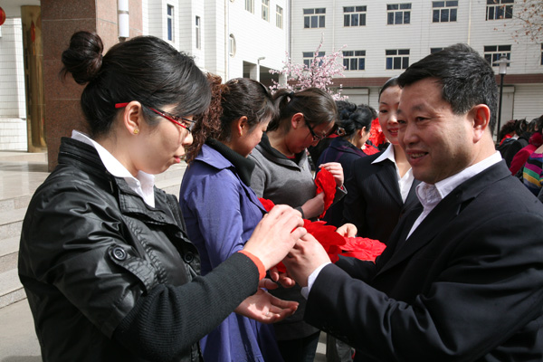 陜西陜煤銅川礦業(yè)有限公司黨政領(lǐng)導(dǎo)高度重視,委派礦區(qū)工會(huì)女工委精心準(zhǔn)備,推薦首屆“巾幗十杰”、“巾幗能手”、局屬各系統(tǒng)局級(jí)先進(jìn)女職工共計(jì)38名代表參加。出發(fā)前,局黨政主要領(lǐng)導(dǎo)委托局黨委副書(shū)記李志科,礦區(qū)工會(huì)主席張仿文為她們送行。局黨委副書(shū)記李志科,礦區(qū)工會(huì)主席張仿文,礦區(qū)工會(huì)副主席何玉璽,礦區(qū)工會(huì)女工主任翟永俠親自為每位代表戴上大紅花,設(shè)宴送行,并殷切地囑托:“珍惜這難得的機(jī)會(huì),這是黨中央進(jìn)一步倡導(dǎo)尊重勞動(dòng)、尊重知識(shí)、尊重人才、尊重創(chuàng)造的時(shí)代新風(fēng),是體現(xiàn)工會(huì)組織對(duì)先進(jìn)女職工的關(guān)愛(ài),同時(shí)為先進(jìn)女職工創(chuàng)造學(xué)習(xí)交流的機(jī)會(huì)。所以,希望大家珍惜榮譽(yù)的同時(shí),一定要虛心學(xué)習(xí),把好的經(jīng)驗(yàn)和好的做法,學(xué)到手,帶回來(lái),更好地為我們銅川礦業(yè)公司服好務(wù),做好事,彰顯我們銅川礦業(yè)女工的巾幗風(fēng)采?!?/p>