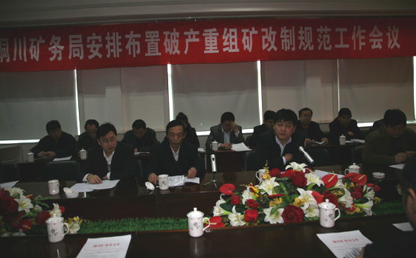 3月9日下午,銅川礦務局在紅玫瑰大酒店會議室召開會議,安排布置破產(chǎn)重組礦改制規(guī)范工作。副局長封建利主持會議并作總結(jié)講話。鴨口公司、徐家溝公司行政一把手及相關(guān)科室負責人、礦務局財務處、生產(chǎn)處、企改處、地測處、資產(chǎn)辦、安監(jiān)局、物管處等相關(guān)負責同志約30余人參加了會議。