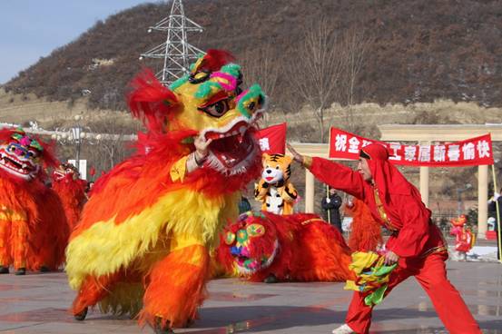 此次表演共有五個部分組成,分別是:威武雄壯、氣概豪邁的威風(fēng)鑼鼓;如一支支彩蝶翩翩起舞的秧歌表演;象征著求實、創(chuàng)新、團(tuán)結(jié)、奉獻(xiàn)企業(yè)精神的舞龍表演;吶喊著青春、彰顯著蓬勃生機(jī)的女子腰鼓;帶著黃土氣息,體現(xiàn)渭北煤海人豪放的舞獅表演。最能讓人眼前一亮的是那兩只活潑可愛的虎娃吉祥物,他一會兒穿梭于表演隊伍之間,做出各種可愛的動作,一會兒鉆進(jìn)人群與孩子們歡鬧,引得大家不時發(fā)出陣陣歡笑,紛紛與他合影留念。最后,舞獅隊表演的獅子拜年、雙獅爭寵、獅子飛天、獅子翻身、獅子鬧春等高難動作,將演出推向了高潮,贏得了職工家屬的一片掌聲。大家紛紛踏著喜悅的節(jié)拍,伴著陣陣的炮竹聲,情不自禁扭動起來,共同感受這和諧美好的新春氛圍。