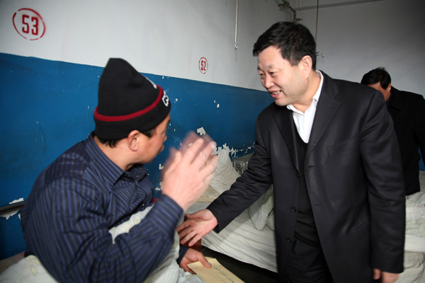礦區(qū)工會(huì)主席張仿文看望受傷的礦工