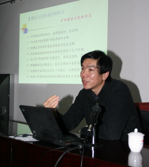 西安科技大學(xué)安全工程系教授文虎正在作專題講座