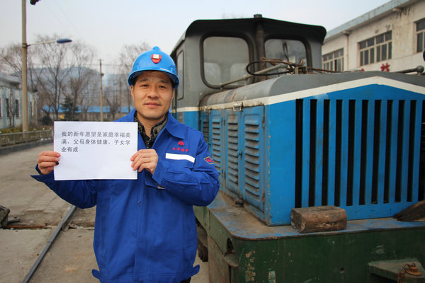 新年愿望:站在機(jī)車旁,運(yùn)輸區(qū)職工張豎斌面對鏡頭羞澀的笑答:“我的愿望很實(shí)在,就是家庭幸福,父母健康,女兒學(xué)業(yè)有成”。