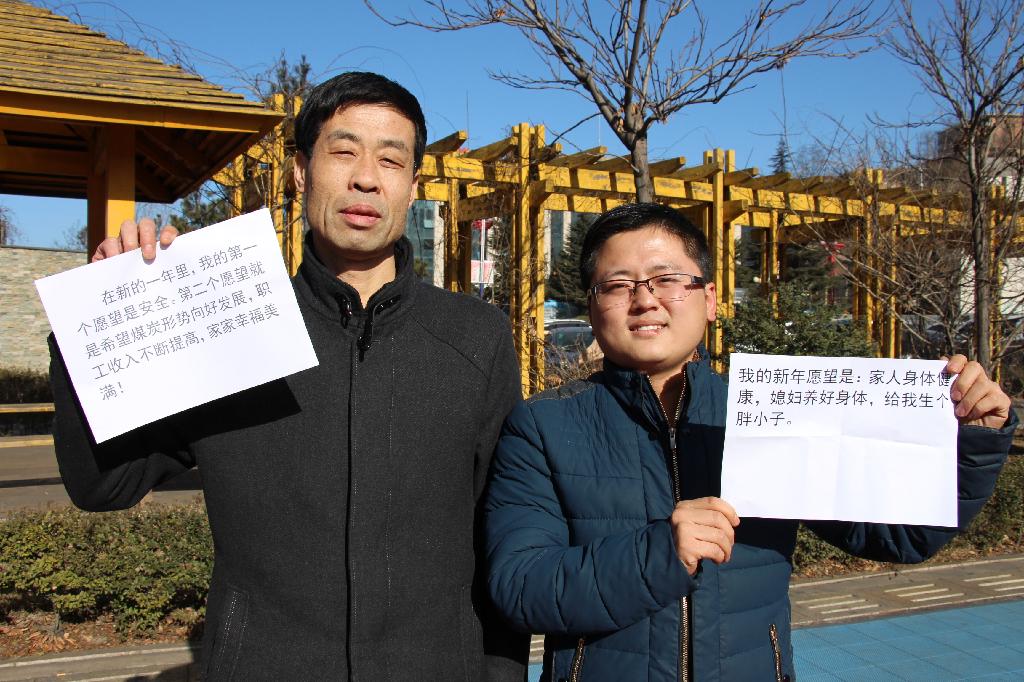 新年愿望:張占強(qiáng)說“我的愿望第一是安全,第二個(gè)是煤炭形勢向好發(fā)展,職工收入提高”。年輕的技術(shù)員張耀峰笑呵呵的說道:“媳婦現(xiàn)在懷孕了,我最大的愿望就是母子平安,媳婦給我生個(gè)大胖小子”。