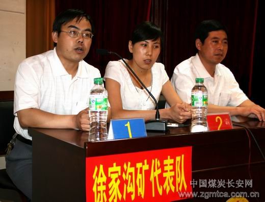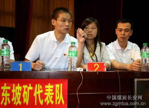 參加決賽的是下石節(jié)礦、東坡礦、陳家山礦、徐家溝礦、直屬機關(guān)工委、鐵運公司、華瑞公司、多經(jīng)公司等9支代表隊,抽簽決定坐次,設(shè)立了仲裁委員會,保證競賽的公平。競賽分為個人必答題、集體必答題、搶答題、風(fēng)險題四部分。