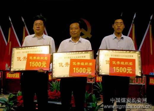 經(jīng)過激烈的角逐,華瑞公司榮獲一等獎;陳家山礦、徐家溝礦、東坡礦榮獲二等獎;下石節(jié)礦、直屬機關(guān)工委、鐵運公司、王石凹礦、多經(jīng)公司榮獲三等獎;中心醫(yī)院、東坡礦、下石節(jié)礦榮獲優(yōu)秀組織獎。
