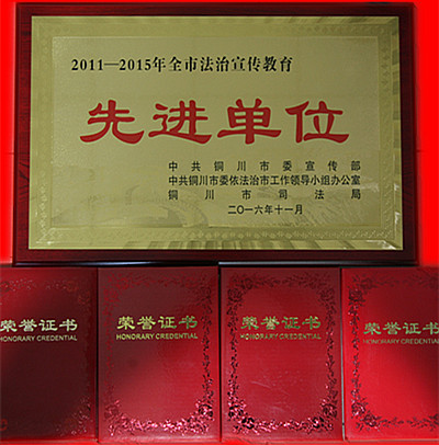 會(huì)上,公司陳家山礦被中共銅川市委宣傳部、中共銅川市委依法治市工作領(lǐng)導(dǎo)小組辦公室、銅川市司法局授予“2011—2015年全市法治宣傳教育先進(jìn)單位”殊榮,公司副總經(jīng)理、陳家山礦黨委書記、礦長(zhǎng)邢彥民榮獲“2011-2015年全市法治宣傳教育先進(jìn)個(gè)人”稱號(hào),公司黨委宣傳部干事郭民榮獲全市普法先進(jìn)工作者稱號(hào)。