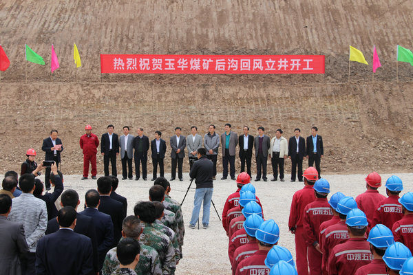 隨后,公司副總經(jīng)理、總工程師師同民宣布“玉華煤礦后溝回風立井開工”。隨后,出席開工儀式的領導,手持鐵锨,在風井井筒坐標位置,挖開第一锨土進行開工奠基。
