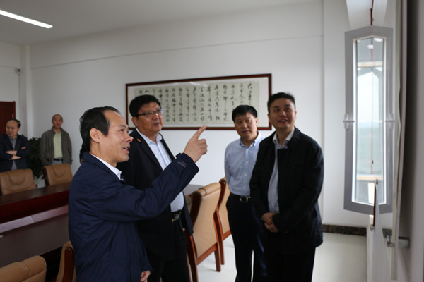 8時50分許,王蓬總經(jīng)理會見了陜鐵投榆橫鐵路黨委書記、董事長雷登峰等領(lǐng)導(dǎo)同志,并在先期抵達(dá)的鐵運(yùn)分公司經(jīng)理孫建軍、黨委書記陳冬林等領(lǐng)導(dǎo)同志的陪同下,到陜鐵投榆橫鐵路調(diào)度室調(diào)研。對照《榆橫鐵路沿線各站進(jìn)入企業(yè)專用線示意圖》,王蓬總經(jīng)理詳細(xì)聽取了榆橫鐵路組建、投資、啟用、生產(chǎn)、運(yùn)輸、安全、管理、技術(shù)、能力、發(fā)展等方面的情況匯報。隨后,王蓬總經(jīng)理一行饒有興趣登上頂樓,俯視著車站的全貌,凝視著鐵路的全景,對榆橫鐵路密制的“鐵路網(wǎng)”、編制的“新干線”給予了高度贊賞。