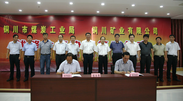 銅川市委常委、副市長張惠榮,陜西煤監(jiān)局銅川煤監(jiān)分局局長賈云海,銅川市政府副秘書長劉新琦,銅川市煤炭、人社、發(fā)改、財政、國資、國土等相關部門負責同志,王益區(qū)、印臺區(qū)、耀州區(qū)分管領導,區(qū)縣煤炭局局長、地方煤礦礦長。銅川礦業(yè)公司黨政領導王蓬、郭寶輝、劉水利、劉啟科、徐捷、師同民、李先鋒,公司各副總、機關部室負責人、東區(qū)五礦礦長、市區(qū)有關單位負責人參加簽約儀式。