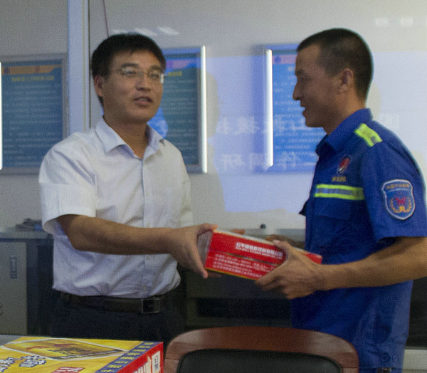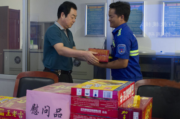 8月4日上午, 陜煤化集團(tuán)副總經(jīng)理、陜煤股份公司總經(jīng)理閔龍一行到公司救護(hù)大隊(duì)看望慰問即將遠(yuǎn)赴加拿大,代表中國參加第十屆國際礦山救援技術(shù)競賽的陜西煤業(yè)化工集團(tuán)有限公司救護(hù)隊(duì)指戰(zhàn)員。公司執(zhí)行董事、總經(jīng)理王蓬,常務(wù)副總經(jīng)理、安監(jiān)局長劉水利,救護(hù)大隊(duì)負(fù)責(zé)人及國際礦山救援技術(shù)競賽集訓(xùn)隊(duì)負(fù)責(zé)人等陪同慰問。
