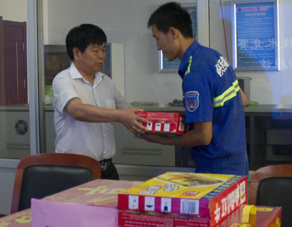 座談會(huì)上,陜煤化集團(tuán)和公司領(lǐng)導(dǎo)分別給集訓(xùn)隊(duì)員送上了飲料、防暑藥物等慰問品,并祝愿他們?nèi)〉煤贸煽儭?/p>