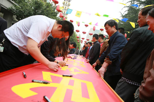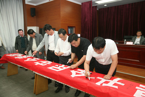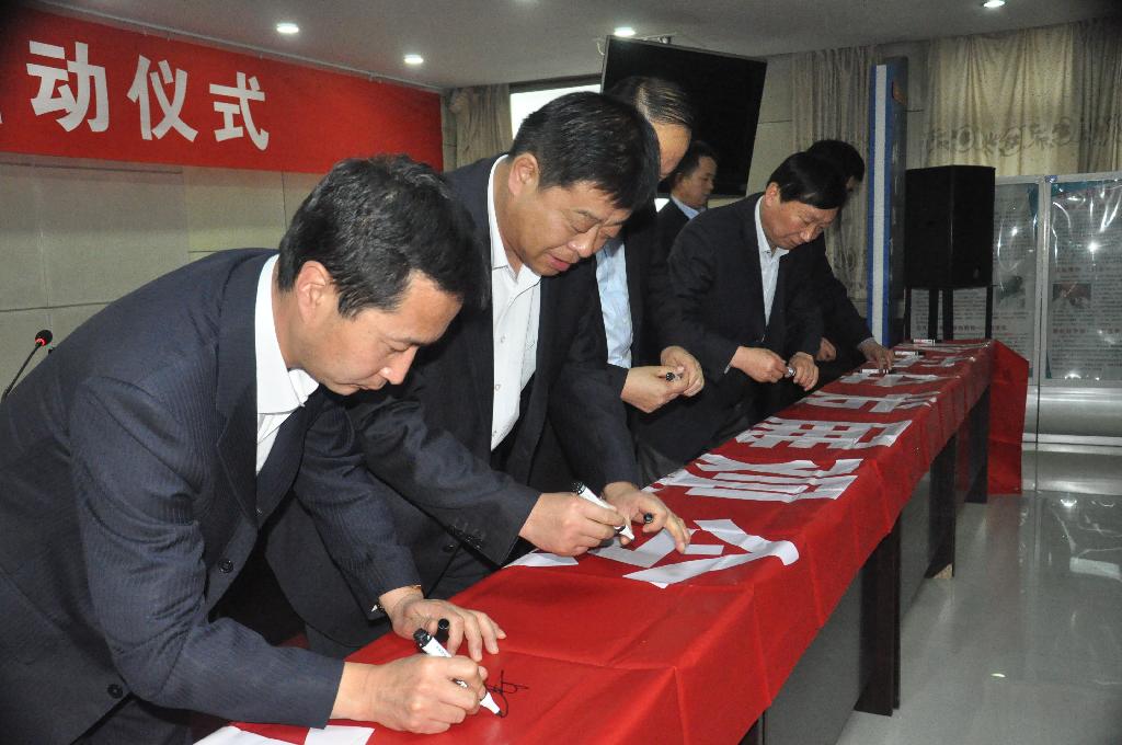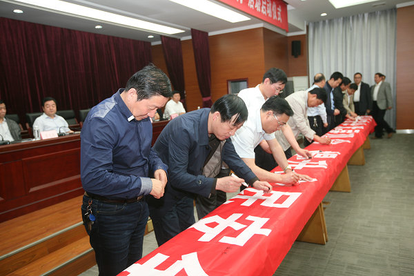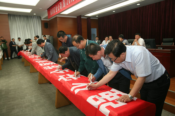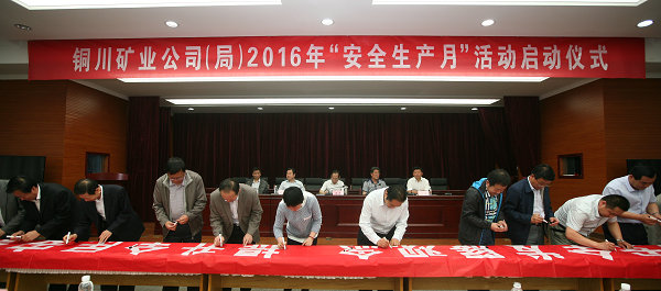 隨后,公司領(lǐng)導(dǎo)及參會人員在“強(qiáng)化安全發(fā)展觀念,提升全民安全素質(zhì)”主題宣傳條幅上鄭重地簽下自己的名字,莊嚴(yán)承諾遵守各項(xiàng)安全管理規(guī)章制度,強(qiáng)化安全生產(chǎn)監(jiān)督管理,確保礦區(qū)安全和諧穩(wěn)定。
