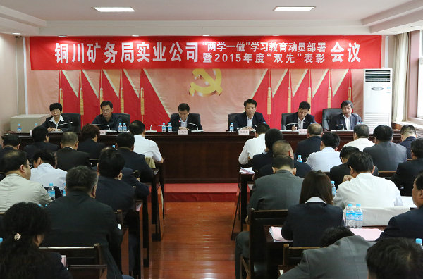 5月13日,實(shí)業(yè)公司召開“兩學(xué)一做”學(xué)習(xí)教育動員部署暨2015年度“雙先”表彰會。礦業(yè)公司副總經(jīng)理、實(shí)業(yè)公司執(zhí)行董事、黨委副書記李先鋒出席并主持會議。實(shí)業(yè)公司領(lǐng)導(dǎo)班子成員、機(jī)關(guān)各部室負(fù)責(zé)人,所屬各單位黨政領(lǐng)導(dǎo)、黨群部長、先進(jìn)班組長70余人參加會議。