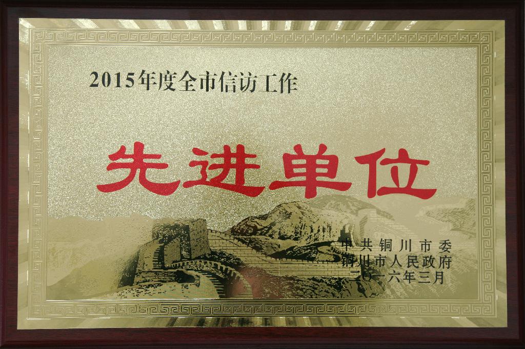 近日,在銅川市信訪工作會上,公司被銅川市委、市政府授予2015年度信訪工作先進單位,這也是繼2013年以來,公司連續(xù)三年獲得此殊榮。
