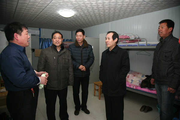王蓬總經(jīng)理到崔家溝分公司后,在崔家溝煤礦黨委書記王飛,公司有關(guān)部室負責(zé)人,玉華礦、陳家山礦、下石節(jié)礦、柴家溝礦礦長,奧博集團負責(zé)人以及崔家溝分公司領(lǐng)導(dǎo)的陪同下,深入職工臨時生活區(qū)與職工們親切交談,詢問住宿條件、飯菜質(zhì)量和工作生活情況。隨后,王蓬總經(jīng)理深入崔家溝煤礦工業(yè)廣場對職工澡堂、區(qū)隊學(xué)習(xí)室、材料供應(yīng)超市、機修廠等地進行了實地調(diào)研,并查看了相關(guān)圖紙,叮囑技術(shù)管理人員盡職盡責(zé)干好工作。