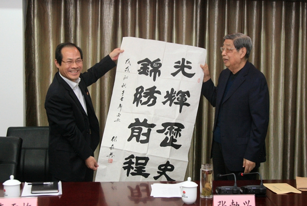 張勃興還將親筆書寫的“光輝歷史 錦繡前程”八個大字送到王蓬手中,以此表達(dá)對銅川礦區(qū)和銅煤礦工的深情厚誼與美好祝福。王蓬滿懷敬意地將張勃興到銅川礦區(qū)的老照片送到老領(lǐng)導(dǎo)手中,希望老領(lǐng)導(dǎo)更加關(guān)注老煤企的轉(zhuǎn)型發(fā)展,為銅川礦業(yè)公司改革發(fā)展多提寶貴意見,同時表示將團(tuán)結(jié)帶領(lǐng)班子成員和廣大干部職工,進(jìn)一步促進(jìn)銅川礦業(yè)各項(xiàng)工作不斷向前發(fā)展。
