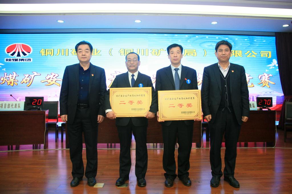 主持人介紹了參賽隊(duì)和競(jìng)賽仲裁人員組成情況,宣讀了競(jìng)賽規(guī)則、評(píng)分標(biāo)準(zhǔn)和獎(jiǎng)項(xiàng)設(shè)置等情況后,競(jìng)賽正式開始。在競(jìng)賽必答題環(huán)節(jié),各參賽隊(duì)語(yǔ)言流暢,回答準(zhǔn)確,比分旗鼓相當(dāng),不差上下。在競(jìng)賽進(jìn)入搶答題環(huán)節(jié),賽場(chǎng)上你爭(zhēng)我奪,比分交替變化,經(jīng)過(guò)兩輪搶答的角逐比拼,比分逐漸拉開檔次,搶答環(huán)節(jié)結(jié)束后,玉華礦代表隊(duì)以300分領(lǐng)先一步,陳家山礦代表隊(duì)以270分位居第二,其他各代表隊(duì)比分也各有提升。進(jìn)入風(fēng)險(xiǎn)題環(huán)節(jié)后,6支代表對(duì)結(jié)合各自比分情況,分別選取了20或30分的風(fēng)險(xiǎn)題,以期刷新比分,扭轉(zhuǎn)局面。在風(fēng)險(xiǎn)題答題結(jié)束后,有兩支代表隊(duì)因比分持平,還進(jìn)行了附加賽。經(jīng)過(guò)激烈的角逐比拼,最終玉華礦代表隊(duì)以330分的好成績(jī)獲得競(jìng)賽一等獎(jiǎng),陳家山礦、柴家溝井分別獲得二等獎(jiǎng),崔家溝項(xiàng)目部、照金項(xiàng)目部、下石節(jié)礦分獲三等獎(jiǎng)。與會(huì)的公司領(lǐng)導(dǎo)分別為獲獎(jiǎng)單位頒獎(jiǎng)。