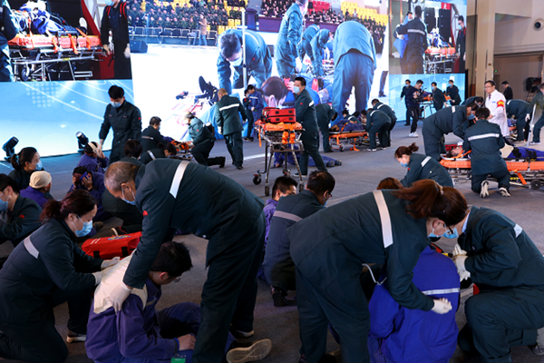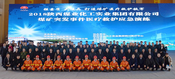 陜煤集團工會主席李向東,陜煤集團副總經(jīng)理、股份公司總經(jīng)理王世斌,陜西省衛(wèi)生健康委員會應(yīng)急管理處處長馬富春,陜煤股份公司副總經(jīng)理張森,陜煤實業(yè)集團董事長、總經(jīng)理楊百鎖、實業(yè)集團黨委書記張文華,銅川礦業(yè)公司黨委書記、執(zhí)行董事王蓬,黨委副書記、工會主席劉啟科,陜煤實業(yè)集團所屬各醫(yī)療中心、西安市急救中心有關(guān)負責(zé)同志現(xiàn)場觀摩了應(yīng)急演練。