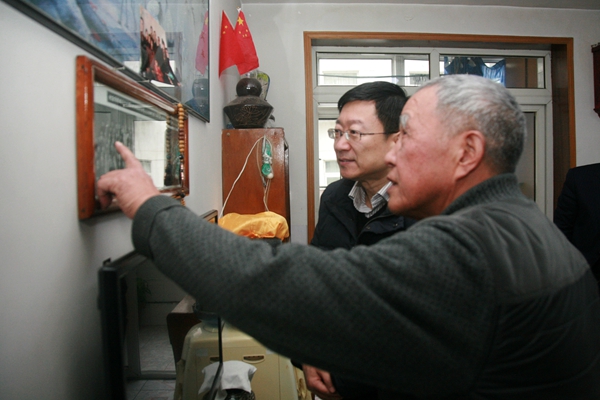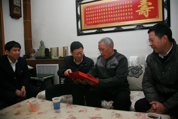 在公司離退休老同志、全國五一勞動獎?wù)芦@得者張善儒家,張永樂緊緊握著張善儒的手說“你們曾經(jīng)為銅川和陜西的煤炭事業(yè)奉獻了自己的大半生,你們身上所體現(xiàn)的勞模精神至今仍然感召著千千萬萬煤礦工人為祖國的繁榮發(fā)展貢獻力量,組織沒有忘記你們,企業(yè)沒有忘記你們,工會組織將繼續(xù)切實落實有關(guān)政策,關(guān)心勞模的生活,幫助你們解決生活難題,不斷讓廣大勞動者更多地感受到黨和政府的溫暖。他將慰問金和米面油送到張善儒手中,并祝老人新年愉快、合家安康、幸福生活,安度晚年。