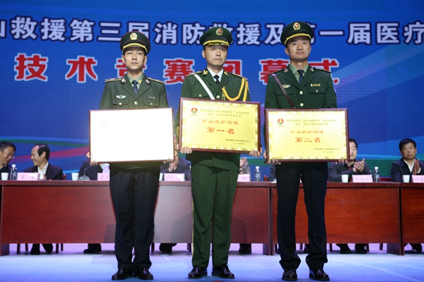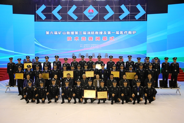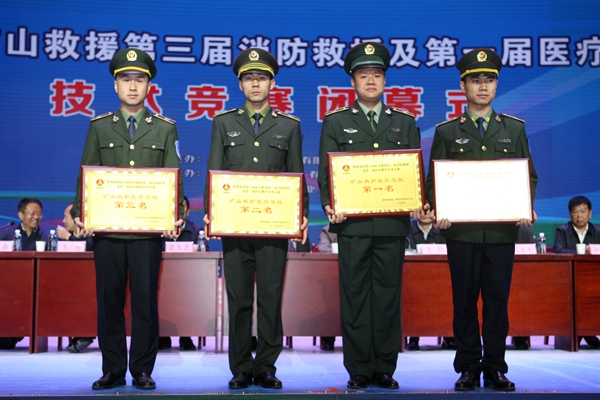 在第六屆礦山救援競(jìng)賽中,銅川礦業(yè)公司礦山救護(hù)大隊(duì)獲得模擬救災(zāi)項(xiàng)目單項(xiàng)和團(tuán)體一等獎(jiǎng),彬長礦業(yè)公司救援中心獲得團(tuán)體二等獎(jiǎng)。黃陵礦業(yè)公司救援中心獲得醫(yī)療急救項(xiàng)目單項(xiàng)一等獎(jiǎng),韓城礦業(yè)公司礦山救護(hù)大隊(duì)分獲模擬救災(zāi)項(xiàng)目和醫(yī)療急救項(xiàng)目二等獎(jiǎng),陜北礦業(yè)公司神南救護(hù)大隊(duì)獲得模擬救災(zāi)項(xiàng)目三等獎(jiǎng)。澄合礦業(yè)公司礦山救護(hù)大隊(duì)、蒲白礦業(yè)公司救護(hù)消防大隊(duì)分獲醫(yī)療急救項(xiàng)目單項(xiàng)三等獎(jiǎng)。大會(huì)同時(shí)對(duì)呼吸器操作、綜合體能、個(gè)人全能三個(gè)項(xiàng)目的獲獎(jiǎng)參賽隊(duì)員進(jìn)行了表彰。