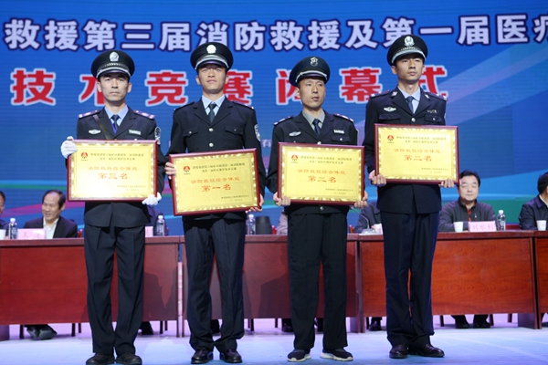 在醫(yī)療救護(hù)項(xiàng)目中,銅川醫(yī)療中心醫(yī)療救護(hù)隊(duì),澄合醫(yī)療中心醫(yī)療救護(hù)隊(duì)、韓城醫(yī)療中心醫(yī)療救護(hù)隊(duì)、渭南醫(yī)療中心醫(yī)療救援隊(duì)分獲團(tuán)體一、二、三等獎(jiǎng)。大會(huì)同時(shí)對(duì)獲得個(gè)人技能(CPR操作)項(xiàng)目和理論考試的個(gè)人進(jìn)行了表彰。