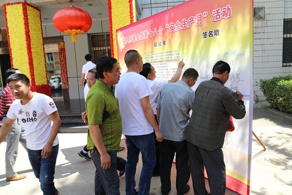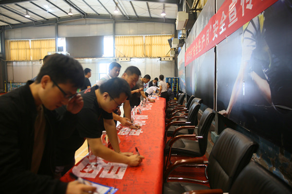 在安全咨詢?nèi)栈顒蝇F(xiàn)場,全體職工進(jìn)行了“防風(fēng)險、除隱患、遏事故”安全宣誓,許下了對安全保障的承諾,并在“防風(fēng)險、除隱患、遏事故”宣傳橫幅上進(jìn)行了安全承諾簽名,樹立主動搞好安全的信心和決心。