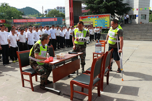 為使“安全宣傳咨詢?nèi)铡被顒舆_(dá)到增強(qiáng)職工安全意識的目的,活動首次采用了“傷殘體驗(yàn)”這種安全警示教育新模式,通過模擬因違章造成的手臂、腿部等部位受傷,讓廣大干部職工觀看傷殘人員日常的一系列生活場景,切身體會受傷后所帶來的生活上的不便,深刻認(rèn)識到“三違”帶來的嚴(yán)重后果。激揚(yáng)的歌曲聲響起,安全協(xié)管員為大家送上了安全文藝演出節(jié)目,期間穿插進(jìn)行的安全知識有獎問答環(huán)節(jié)將現(xiàn)場氣氛推向高潮?!巴咚箓鞲衅麟x頂板和側(cè)幫應(yīng)該多少距離?”“井下低壓供電三大保護(hù)是什么?”,職工紛紛舉手搶答,在獲得小禮品的同時進(jìn)一步提升了安全知識。隨后,全體干部職工列隊(duì)觀看了事故案例警示教育宣傳牌板,人們不時停下腳步或沉思、或討論,體會“安全高于一切”的意義。會場還設(shè)立了咨詢臺,發(fā)放了安全宣傳資料500余份,向職工解答了安全生產(chǎn)法律法規(guī)、工傷保險條例、職業(yè)病危害及防治、安全操作細(xì)則、防火防爆、突發(fā)事件應(yīng)急避險、居民安全常識等知識。