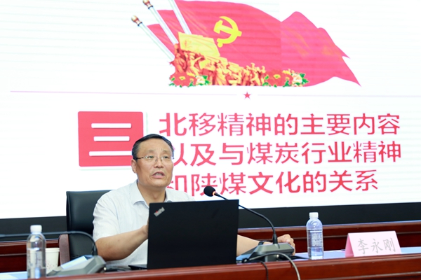講座中,李永剛緊扣開展“不忘初心、牢記使命”主題教育工作的目標(biāo)任務(wù)和相關(guān)要求,緊密結(jié)合陜煤集團改革發(fā)展的決策部署、陜煤創(chuàng)業(yè)發(fā)展的奮斗歷程、弘揚陜煤“北移精神”助推陜煤加快高質(zhì)量發(fā)展的工作要求,從“陜煤集團戰(zhàn)略北移的發(fā)展歷程、戰(zhàn)略北移取得的突出成效、陜煤‘北移精神’的主要內(nèi)容與煤炭行業(yè)精神和陜煤文化的關(guān)系、陜煤‘北移精神’與傳承紅色精神的生動體現(xiàn)、進一步弘揚陜煤‘北移精神’奮力譜寫新時代陜煤發(fā)展新篇章”五個方面,運用豐富的資料、生動的故事、鮮活的事例,從理論和實踐高度,全面系統(tǒng)地闡釋了陜煤集團成立15年來,在實施北移戰(zhàn)略中錘煉出的,以“艱苦奮斗的創(chuàng)業(yè)精神、爭創(chuàng)一流的敬業(yè)精神、敢為人先的創(chuàng)新精神、團結(jié)進取的協(xié)作精神”為核心的陜煤集團“北移精神”,同時緊扣扎實推進“不忘初心、牢記使命” 主題教育,對弘揚陜煤“北移精神”,傳承紅色基因,切實肩負新時代陜煤人在實現(xiàn)陜煤高質(zhì)量發(fā)展中所彰顯的初心使命和擔(dān)當(dāng)作為,以及如何弘揚陜煤“北移精神”,走好新時代陜煤轉(zhuǎn)型發(fā)展之路,為大家解讀了相關(guān)工作舉措和奮進前行征程中要抓好的重點工作。整場講座思路清晰、主題鮮明,邏輯嚴(yán)密、層次分明,重點突出、措施明確,兼具理論解讀性、工作指導(dǎo)性、現(xiàn)實針對性、實踐操作性,進一步加深了公司各級領(lǐng)導(dǎo)干部對“北移精神”的理解認知、深入思考和實踐運用,讓大家通過對陜煤“北移精神”的深刻理解、精準(zhǔn)把握,有力激發(fā)了大家不忘初心、牢記使命,切實踐行陜煤“北移精神”,進一步引領(lǐng)推動銅川礦業(yè)改革發(fā)展,奮力助推陜煤集團加快高質(zhì)量發(fā)展的信心和決心、精神和干勁、擔(dān)當(dāng)和作為,大家紛紛表示要從陜煤“北移精神”中汲取智慧和營養(yǎng),激發(fā)動力和斗志,努力在奮斗創(chuàng)業(yè)中詮釋踐行好陜煤“北移精神”,以實際行動為陜煤改革發(fā)展再作新貢獻。