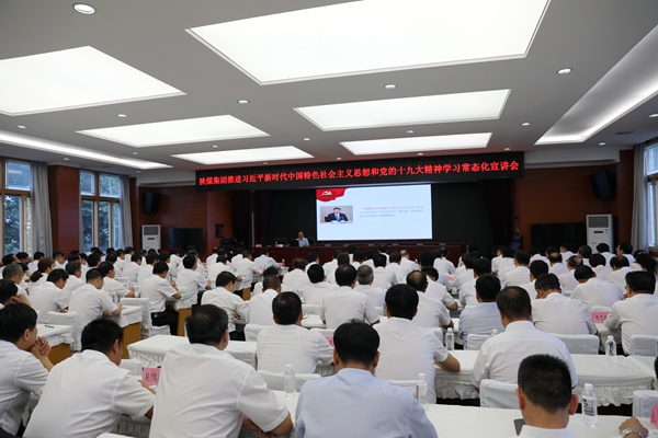 為進(jìn)一步學(xué)習(xí)宣傳貫徹習(xí)近平新時(shí)代中國(guó)特色社會(huì)主義思想和黨的十九大精神,扎實(shí)推進(jìn)習(xí)近平新時(shí)代中國(guó)特色社會(huì)主義思想走深走實(shí)。7月19日,陜煤集團(tuán)宣講團(tuán)成員,集團(tuán)宣傳部部長(zhǎng)、新聞中心主任梅方義到公司開展習(xí)近平新時(shí)代中國(guó)特色社會(huì)主義思想和黨的十九大精神常態(tài)化宣講。公司在家領(lǐng)導(dǎo),各副總,公司機(jī)關(guān)各部門負(fù)責(zé)人,公司所屬各單位副處級(jí)以上領(lǐng)導(dǎo)干部共同聆聽了此次講座。