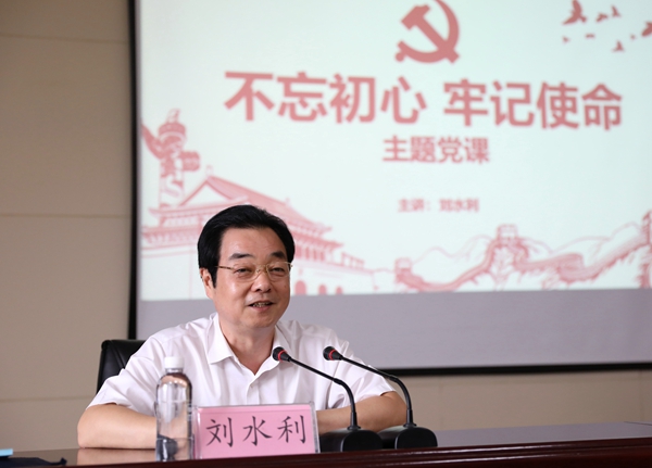 開(kāi)班儀式結(jié)束后,劉水利以《 深入學(xué)習(xí)習(xí)近平新時(shí)代中國(guó)特色社會(huì)主義思想,加快企業(yè)轉(zhuǎn)型升級(jí)、高質(zhì)量發(fā)展,以實(shí)際行動(dòng)踐行初心使命》為題,圍繞“共產(chǎn)黨人的初心和使命是什么,為什么要不忘初心牢記使命,如何才能不忘初心牢記使命,怎樣結(jié)合實(shí)際履行不忘初心牢記使命”四個(gè)方面,結(jié)合公司當(dāng)前工作實(shí)際,發(fā)展思路、需要破解問(wèn)題,以及在追趕超越、高質(zhì)量發(fā)展中所肩負(fù)的使命擔(dān)當(dāng),為學(xué)員上了一堂精彩的黨課。