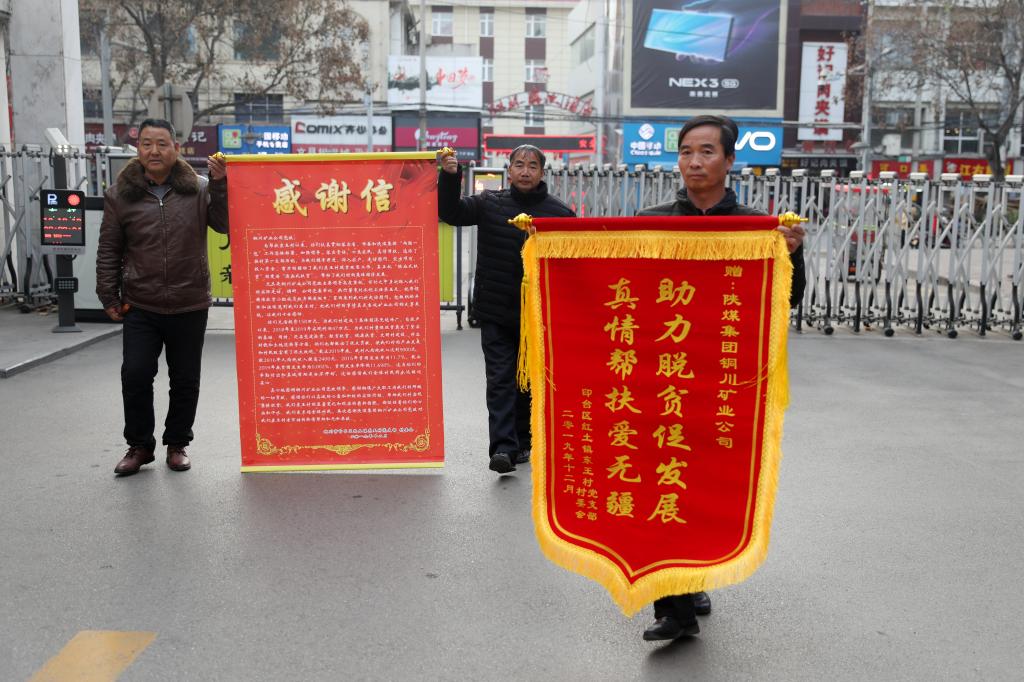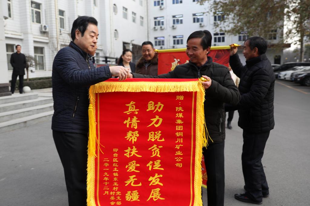 12月18日一大早,公司扶貧對象銅川市印臺區(qū)紅土鎮(zhèn)東王村干部和村民代表來到公司辦公樓前,向公司黨政送來了錦旗和感謝信,以此表達(dá)對公司真情幫扶東王村脫貧攻堅的致敬與謝意。公司黨委書記、執(zhí)行董事劉水利,黨委副書記、工會主席劉啟科接過錦旗和感謝信。隨后,公司領(lǐng)導(dǎo)和公司機關(guān)有關(guān)部門、相關(guān)單位負(fù)責(zé)同志及公司駐村幫扶干部,與紅土鎮(zhèn)、東王村干部和村民代表在公司機關(guān)二樓會議室進(jìn)行了座談交流。