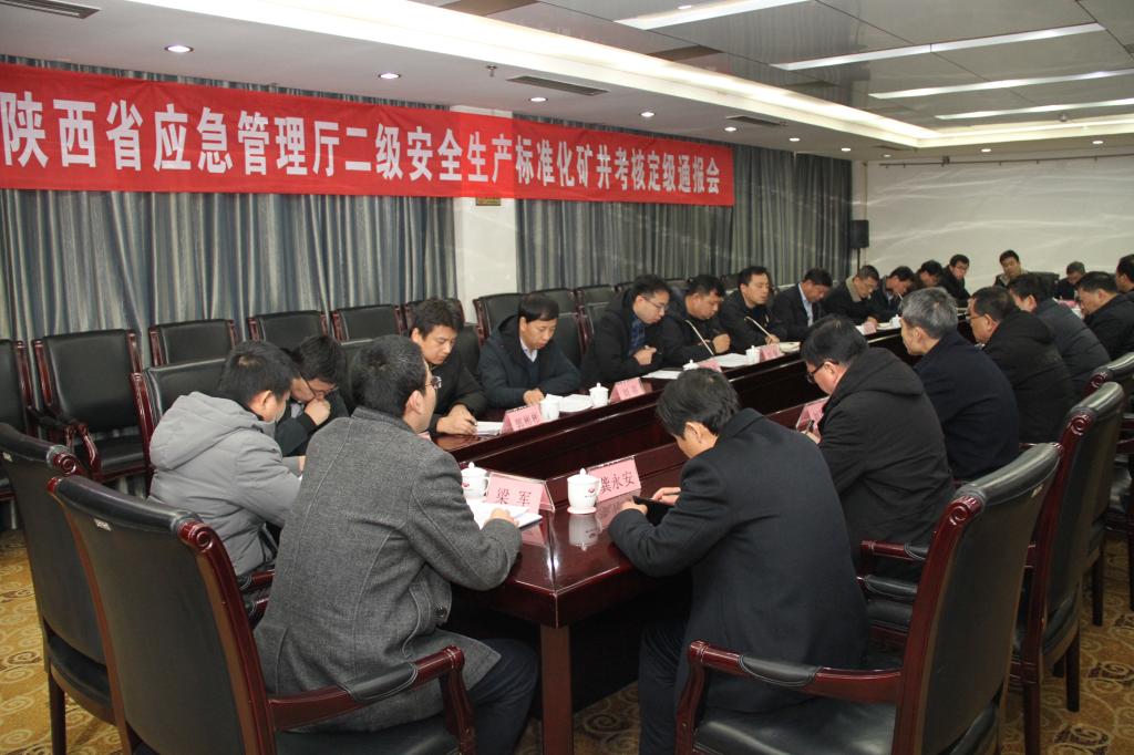 12月20日上午,陜西省應(yīng)急管理廳二級安全生產(chǎn)標(biāo)準(zhǔn)化礦井考核定級通報會在煤業(yè)賓館召開了。陜西省應(yīng)急管理廳二級調(diào)研員劉勝利,銅川市能源局有關(guān)負(fù)責(zé)同志和驗(yàn)收組相關(guān)領(lǐng)導(dǎo),公司副總經(jīng)理邢彥民,公司相關(guān)部門負(fù)責(zé)人、柴家溝井有關(guān)領(lǐng)導(dǎo)參加驗(yàn)收通報會。驗(yàn)收組在會上宣布柴家溝井各專業(yè)達(dá)到考核要求,通過二級考核定級驗(yàn)收。