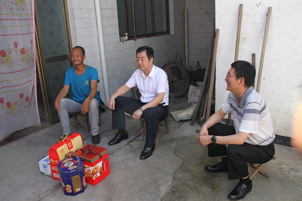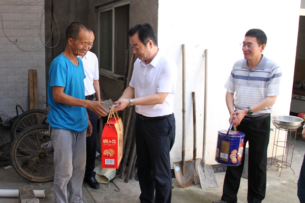 隨后,劉水利深入東王村村民馮友成家,關(guān)切地詢問了馮友成的生活和家庭狀況,并向他送去慰問品。當了解到馮友成雖身有殘疾,但2015年已納入五保戶進行兜底幫扶,每年村里扶貧項目給他有分紅,有醫(yī)保,他還有三畝多耕地種莊稼有收成,看護村莊林地有補貼,在村上幫扶和個人努力下收入有保障,吃穿不發(fā)愁,他的生活還有親屬和村上幫助照顧,已實現(xiàn)脫貧時,劉水利說 ,有黨的好政策,有村上的幫助和企業(yè)的幫扶,有個人的辛勤勞動,困難一定會克服,日子也會越來越好。他同時對隨行的公司派駐東王村駐村第一書記趙龍喜說,對馮友成這樣的家庭更要多關(guān)注、多幫扶,要讓他們感受的組織的溫暖和親情的關(guān)愛,讓他們享受到黨的好政策,享受到農(nóng)村改革發(fā)展和村辦企業(yè)帶來的實惠,堅定克服困難的信心和決心,切實從思想和精神上脫貧,并勉勵馮友成保重身體,以樂觀心態(tài)面對困難,靠自立自強,辛勤勞動,進一步改變生活面貌。