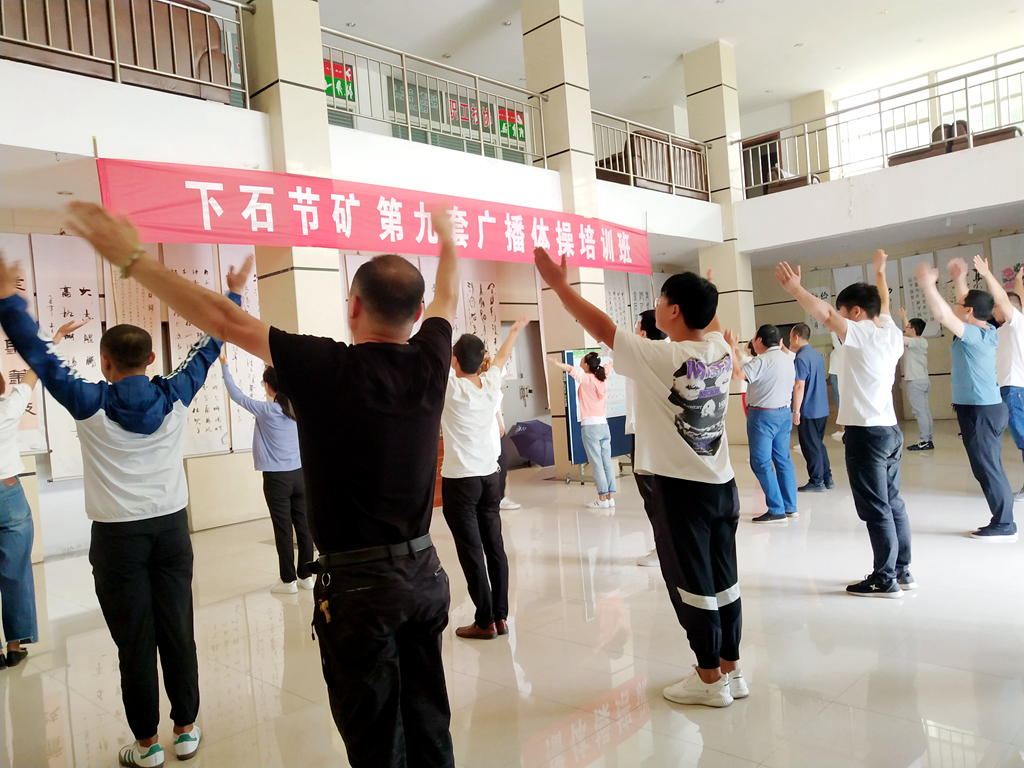 開展全民健身人人受益,推廣廣播體操人人參與。第九套廣播體操在礦區(qū)開展以來,每天早上7點(diǎn)45分,伴隨著音樂和口令,單位領(lǐng)導(dǎo)親自帶頭,干部職工紛紛參與,在辦公樓、區(qū)隊(duì)樓、車間等區(qū)域整齊劃一地做起了廣播體操,一套廣播體操做下來,活絡(luò)了筋骨、放松了精神,讓人舒服和輕松。這是在下石節(jié)礦推行第九套廣播體操的一個(gè)縮影。